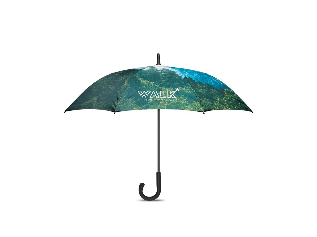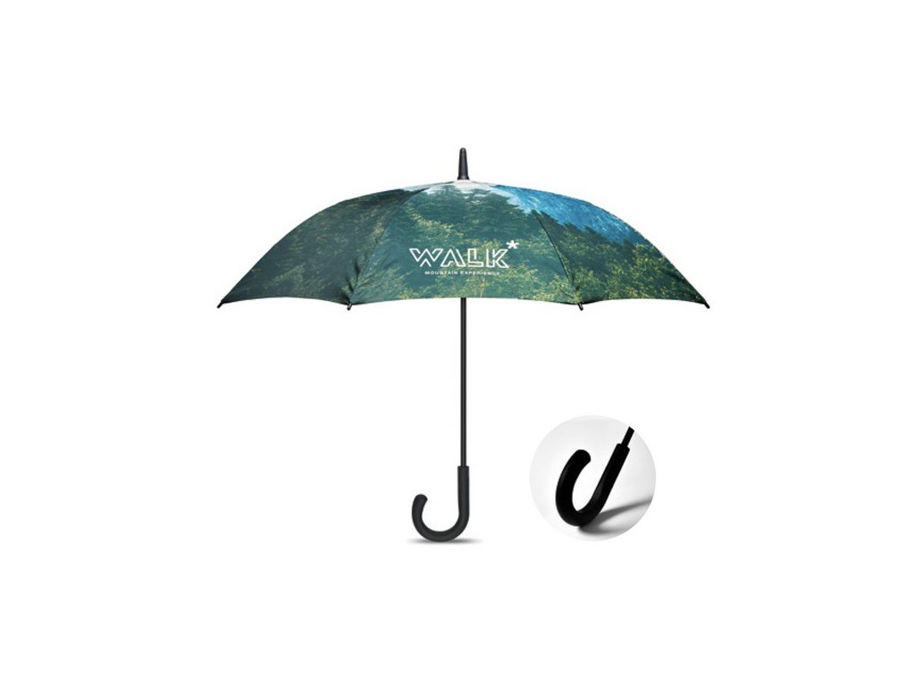 Tento deštník je nejen praktický s velkou stříškou, která poskytuje ochranu před deštivými podmínkami, ale také nabízí velkou plochu pro vaše jedinečné plnobarevné návrhy.