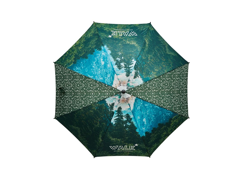 Všech 8 panelů lze potisknout od okraje k okraji libovolným požadovaným designem a živými barvami, které jsou viditelné i zespodu deštníku. Kromě toho si můžete vybrat dvouvrstvou stříšku s vnitřními panely potištěnými vaším designem – jako jsou listy nebo modrá obloha – pro povzbuzení v deštivém dni.