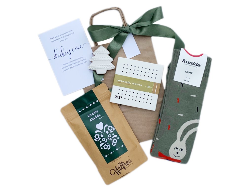 Oblíbená a stylová kombinace kvalitních slovenských produktů, které zaručeně potěší obchodní partnery nebo klienty. Na výběr máte dárky zabalené ve stylové krabičce nebo dárkové tašce. Samozřejmostí je logo, stuha ve firemních barvách a kartička s vlastním textem, kterou vám rádi připravíme na míru.